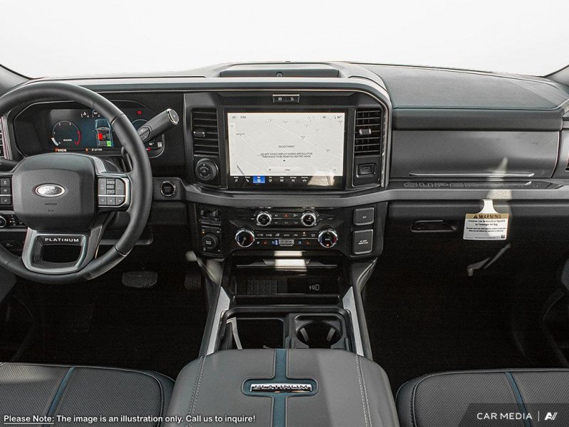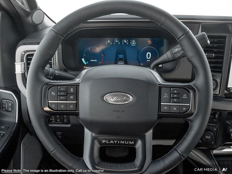 Our F-350 Super Duty's trim level is Platinum. This F-350 Platinum is embellished with chrome exterior accents and unique exterior styling, with power running boards, adaptive cruise control, a driver's heads-up display and retractable rear steps, along with Platinum-themed leather-trimmed heated and ventilated front seats with power adjustment, memory function and lumbar support, a heated leather-wrapped steering wheel, voice-activated dual-zone automatic climate control, power-adjustable pedals, a sonorous 8-speaker Bang & Olufsen audio system, and two 120-volt AC power outlets. This truck is also ready to get busy, with equipment such as class V towing equipment with a hitch, trailer wiring harness, a brake controller and trailer sway control, beefy suspension with heavy duty shock absorbers, power extendable trailer style mirrors, up-fitter switches, and LED headlights with front fog lamps and automatic high beams. Connectivity is handled by a 12-inch infotainment screen powered by SYNC 4, bundled with Apple CarPlay, Android Auto, inbuilt navigation, and SiriusXM satellite radio. Safety features also include lane keeping assist with lane departure warning, a surround camera system, pre-collision assist with automatic emergency braking and cross-traffic alert, blind spot detection, rear parking sensors, forward collision mitigation, and a cargo bed camera. This vehicle has been upgraded with the following features: Power Stroke, Leather Seats, Fx4 Off-road Package.