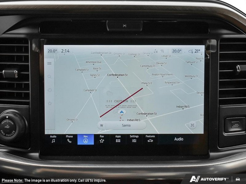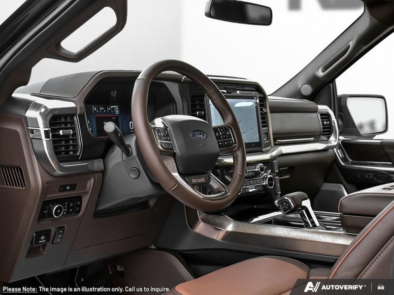 Our F-150's trim level is King Ranch. This F-150 King Ranch takes things even further, with a driver's head up display unit, a dual-panel sunroof, power running boards and a power tailgate, along with other great standard features such as premium Bang & Olufsen audio, ventilated and heated leather-trimmed seats with lumbar support, remote engine start, adaptive cruise control, FordPass 5G mobile hotspot, and a 12-inch infotainment screen powered by SYNC 4 with inbuilt navigation, Apple CarPlay and Android Auto. Safety features also include blind spot detection, lane keeping assist with lane departure warning, front and rear collision mitigation, and an aerial view camera system. This vehicle has been upgraded with the following features: 20 Inch Chrome-like Pvd Wheels, Spray-in Bed Liner.