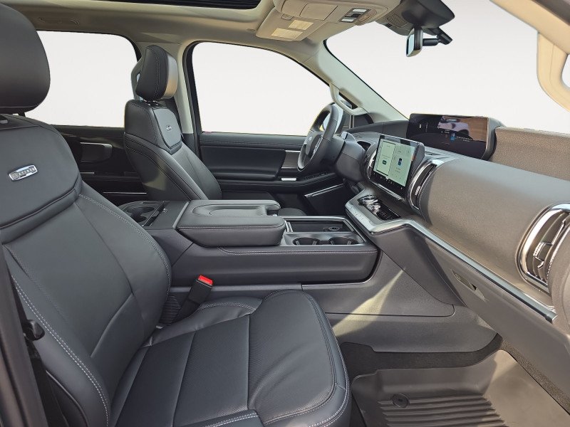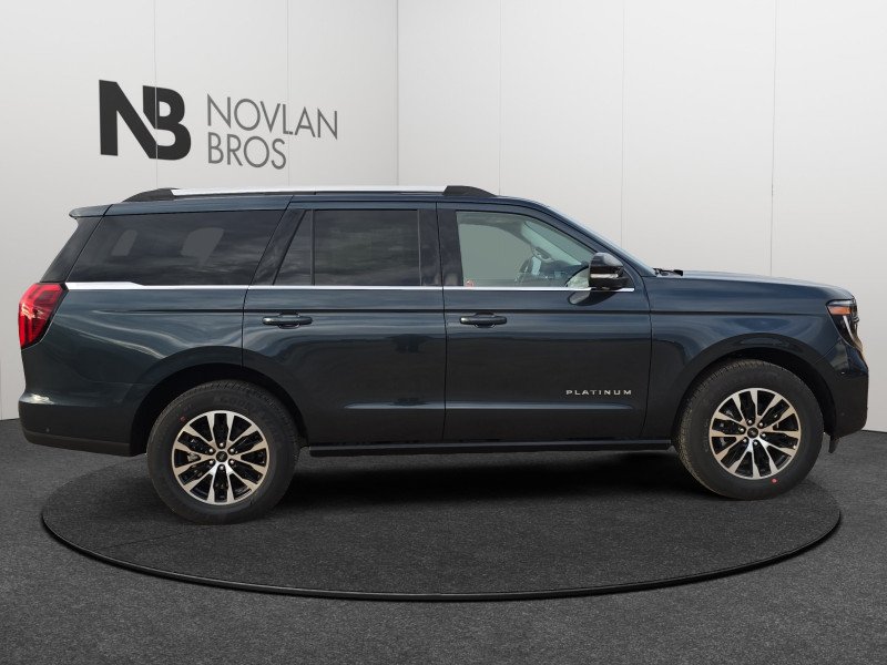 Our Expedition's trim level is Platinum. This Expedition Platinum steps things up with adaptive suspension and polished aluminum wheels, along with comfort and entertainment features such as power running boards, ventilated and heated front captain's chairs with leather upholster, power adjustment, lumbar support and memory function, a heated leather steering wheel with auto tilt away, genuine wood and metal interior trim, a premium 10-speaker Bang & Olufsen audio system, power adjustable pedals, proximity keyless entry with remote start, and an infotainment screen powered by SYNC 4A, bundled with wireless Apple CarPlay and Android Auto, inbuilt navigation, mobile internet hotspot access, and SiriusXM streaming radio. You and yours are kept safe on the road thanks to adaptive cruise control, blind spot monitoring, pre-collision alert and automatic emergency braking, lane keeping assist with lane departure warning, front and rear parking sensors, front and rear collision mitigation, and an aerial view camera system. Additional features include an express open/close sunroof with a power sunshade, a power tailgate for rear cargo access, LED lights with automatic high beams, dual-zone climate control with separate rear controls, four 12-volt DC and 120-volt AC power outlets, and even more. This vehicle has been upgraded with the following features: Bluecruise, Ford Co-pilot360 Active.