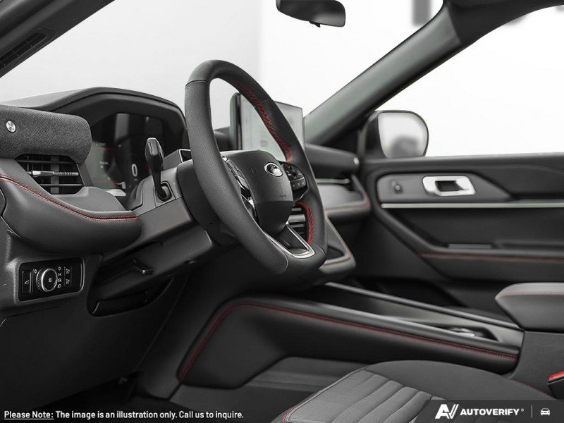 Our Explorer's trim level is ST-Line. This Explorer ST-Line steps things up with BlueCruise 1.2, inbuilt navigation, Bang & Olufsen audio, an aerial view camera system and a heated steering wheel. Also standard include 20 aluminum wheels, FordPass Connect 5G mobile hotspot internet access, adaptive cruise control, smart device remote engine start, and a power liftgate for rear cargo access. On the inside, occupants are treated to heated front seats, voice-activated dual-zone climate control, and a 13.2-inch infotainment screen with wireless Apple CarPlay and Android Auto. Safety features also include lane keep assist with lane departure warning, collision mitigation, automatic emergency braking, evasion assist, and rear parking sensors. This vehicle has been upgraded with the following features: Leather Seats, Second Row Heated Seats, 21 inch Aluminum Wheels, Premium Package.