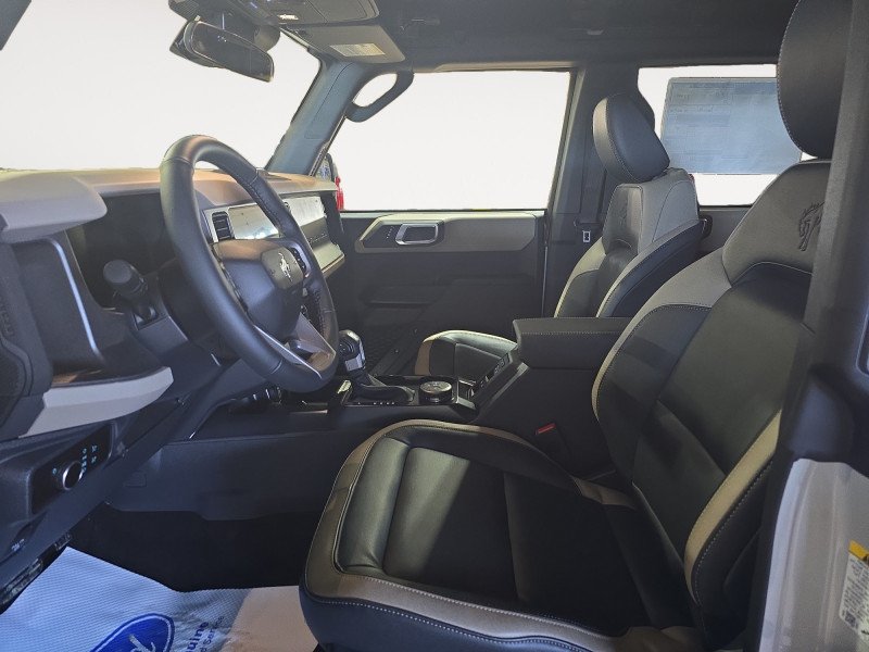 Our Bronco's trim level is Big Bend. The interior features heated cloth bucket seats, a leather-wrapped steering wheel, dual-zone automatic climate control, and smart storage throughout, making it as comfortable as it is capable. The SYNC 4 system with a 12-inch touchscreen, wireless Apple CarPlay, Android Auto, and connected navigation keeps you informed and in control on every adventure. With rugged essentials like full-time 4x4 capability, Bilstein off-road suspension, and multiple skid plates, itâs engineered to conquer trails and highways alike. Safety comes standard with Ford Co-Pilot360 technologies including BLIS with Cross-Traffic Alert, Lane-Keeping Assist, Automatic Emergency Braking, and a Reverse Sensing System. With removable roof panels, a swing-out rear door, and bold off-road styling, this SUV delivers the perfect balance of durability, modern comfort, and pure adventure spirit. This vehicle has been upgraded with the following features: Remote Engine Start, 17 Aluminum Wheels, Dual-Zone Electronic Climate Control, Carpeted Flooring.