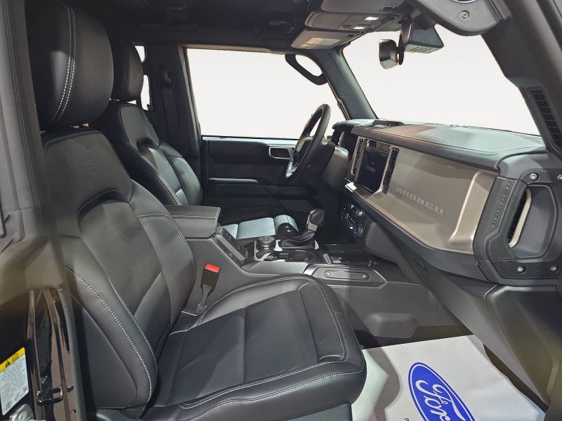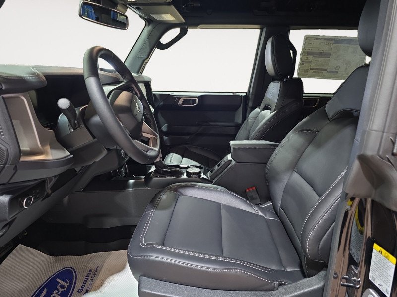 Our Bronco's trim level is Outer Banks. Inside, heated leather-trimmed bucket seats with power adjustability, a heated leather steering wheel, and dual-zone automatic climate control create a cabin that’s both comfortable and commanding. The 12-inch SYNC 4 touchscreen with wireless Apple CarPlay, Android Auto, and connected navigation keeps you seamlessly in control, while the premium audio system with seven speakers delivers crisp sound wherever the road leads. Every adventure feels effortless thanks to trail-specific systems like Trail Control, Trail Turn Assist, and Trail One-Pedal Drive. Exterior features like 18-inch bright machined aluminum wheels, removable roof panels, and body-coloured accents emphasize capability and confidence. Safety and awareness are bolstered by Ford Co-Pilot360 technologies including BLIS with Cross-Traffic Alert, Lane-Keeping Assist, Automatic Emergency Braking, and a Reverse Sensing System. Combining authentic 4x4 engineering with modern innovation, this SUV is built to perform as fearlessly as it looks, on the trail, on the road, and everywhere in between. This vehicle has been upgraded with the following features: 360-Degree Camera, Black Appearance Package, Adaptive Cruise Control.